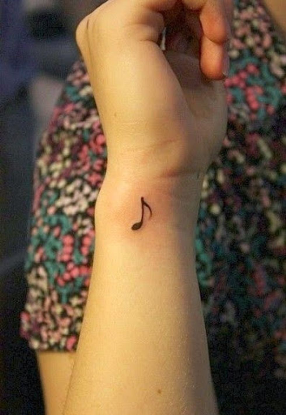 Music tattoos can be notes, treble or bass clefs, or an excerpt from sheet music.