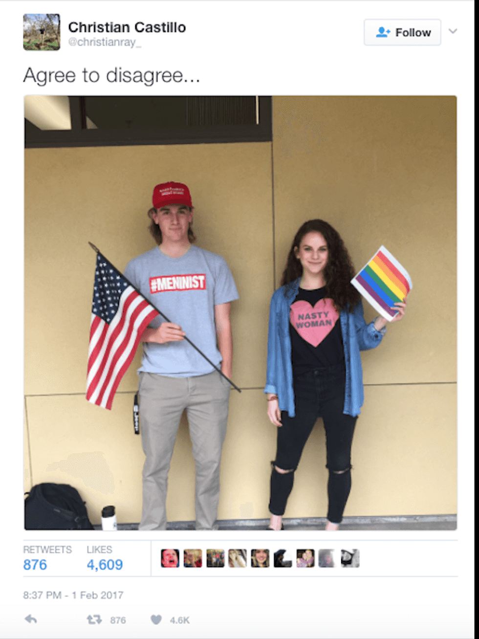 It’s true that in school, social media, and in the world in general, there will be people who come from different backgrounds than you. Growing up with technology did not cradle us as you are suggesting, it has opened our minds to acceptance and diversity if anything. I’m going to assume that you feel that having liberal ideals and protesting against Donald Trump is pointless. I don’t.