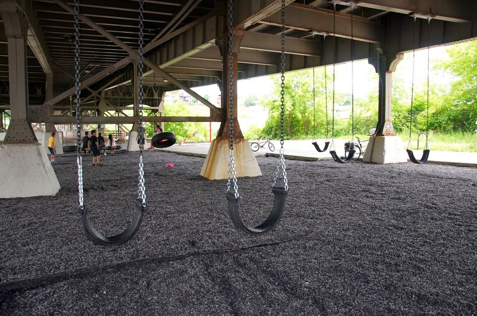 Milwaukee has some of the most unique attractions that a lot of people don't even know about. One of the most popular is in the picture above of Swing Park, a park built and attached to the bottom of a bridge. Other cool places are the Milwaukee Public Market, Oriental Theatre and Safe House.