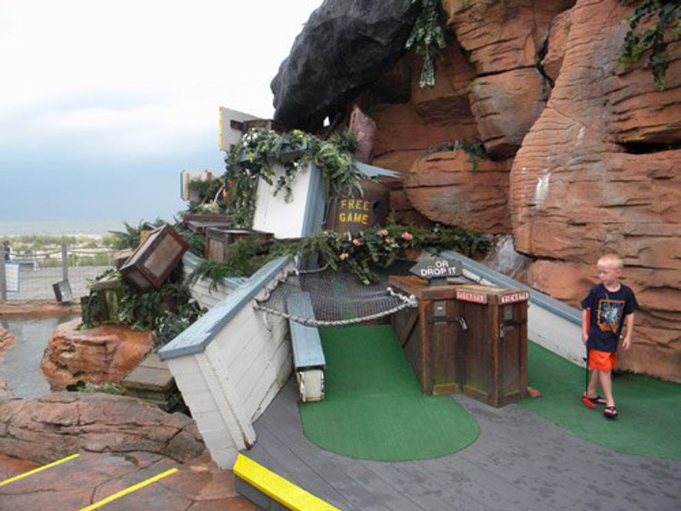 This course has a lot nearby thanks to its impeccable location right in the center of the boardwalk a few steps away from the small food court! It also is above a go cart track and not too far away from the amusement rides at Castaway Cove! This course has an awesome final hole involving a shark's cage and possibly the Jaw's theme song if you're lucky!