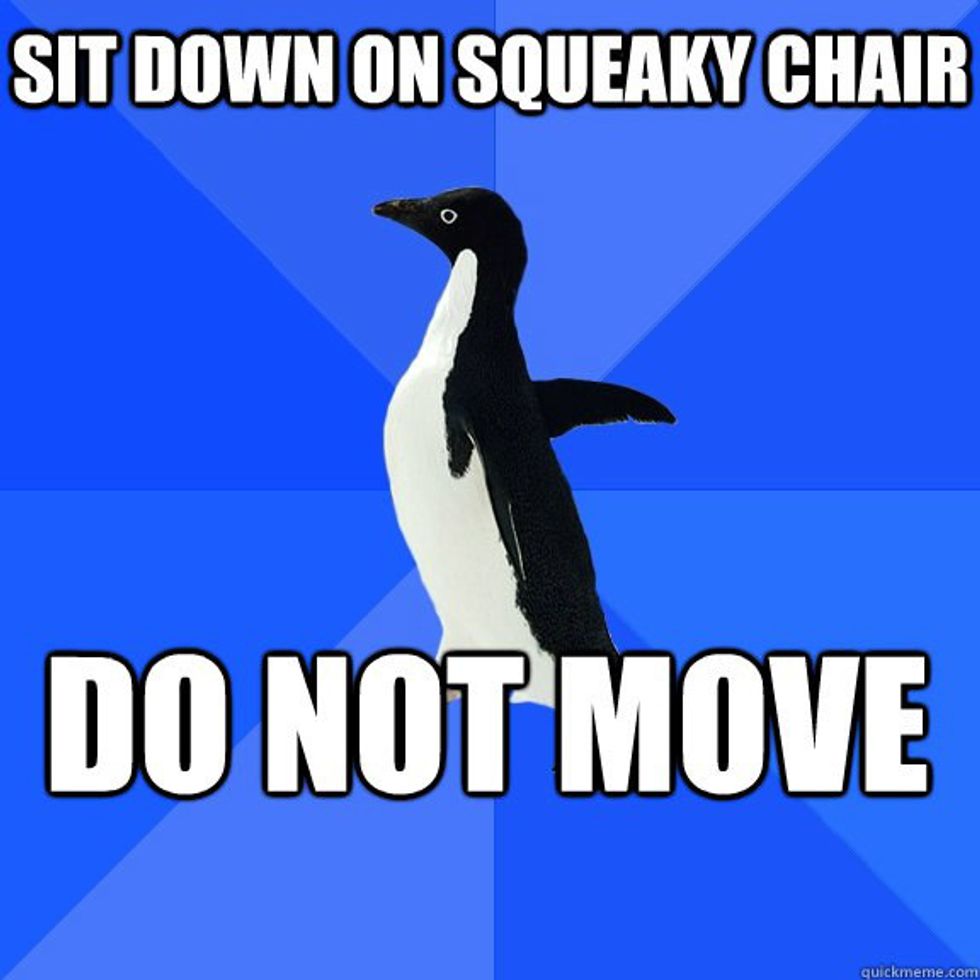 Maybe if I don’t breathe, my chair will stop squeaking.