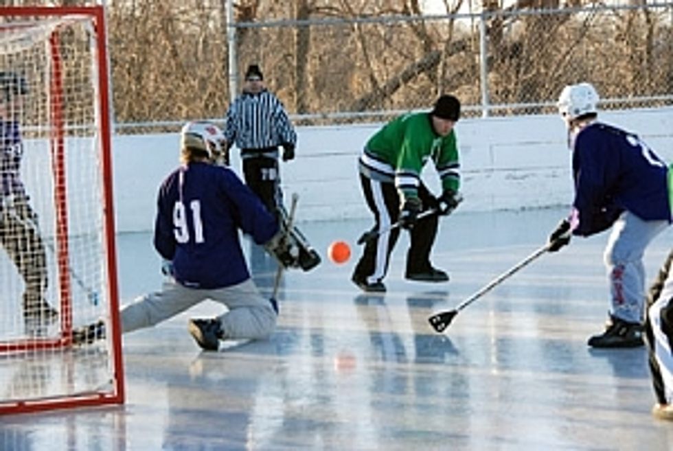 Go find your local lake with a few friends and old broomsticks and a tennis ball. You don't even need ice skates for this one!