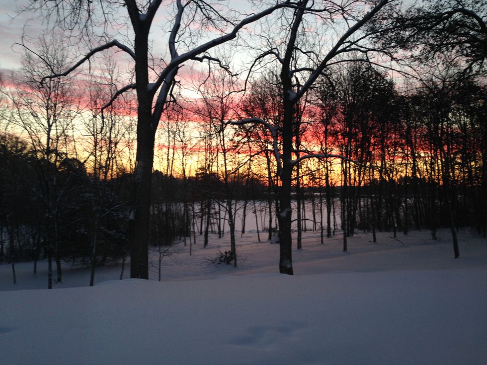 There is nothing prettier than the bright orange sunrise reflecting off of the snow and the clouds in the winter.