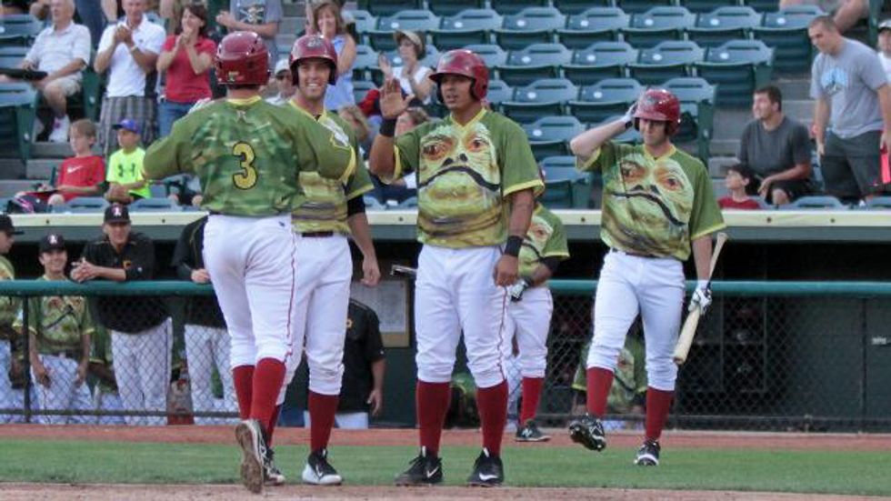 Star Wars nights have become a popular event at ballparks across the country, but some minor league teams take it to the next level by dressing their players according to the theme. Last year, the Altoona Curve wore these Jabba the Hutt jerseys and held a lightsaber fight on the field.