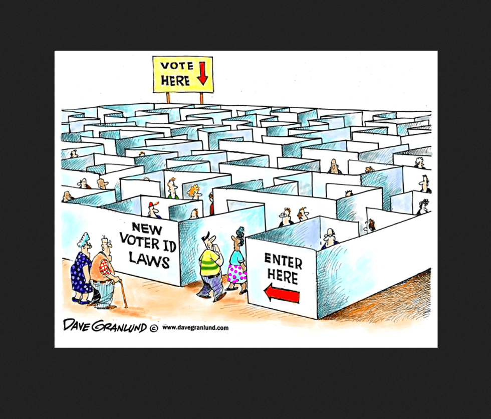 Across the nation, about 11 percent of registered voters lack an acceptable form of identification, such as drivers licenses or passports. And when broken up into different demographics, minorities, the young, the elderly, and the poor are all disproportionately affected. And while obtaining a state-issued photo ID is technically free, there are many hidden costs that create major obstacles to voting. In order to receive an ID, you have to provide proper documentation, such as a birth certificate or passport. However, getting a copy of your birth certificate can cost anywhere from $15 to $30, and renewing a passport can cost up to $110. Married women have an addition hurdle to face, as women who have changed their surname may also have to provide a copy of the marriage license, which can cost between $5 to $40. And these are only the costs of the document themselves; there are additional costs associated with transportation to obtain these documents or to go to the ID-issuing offices. And while driving is easy for those of us fortunate enough to have our own vehicles, there are many voting-age citizens who don't have access to a vehicle. Just take a look at this chart of states with restrictive voter ID laws and the lack of ability to get to an ID-issuing office. Furthermore, there is valid evidence that show that voter ID laws hamper minorities voting. This UCSD study showed that voter turnout for minorities significantly dropped between 2008 and 2012 in states with strict voter ID laws.
