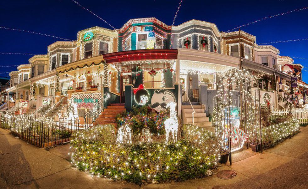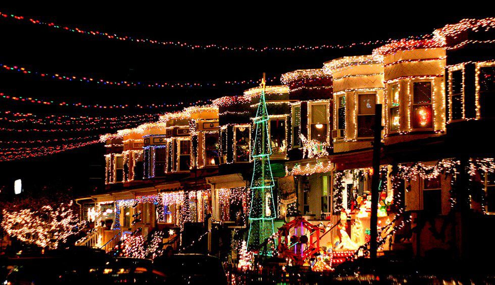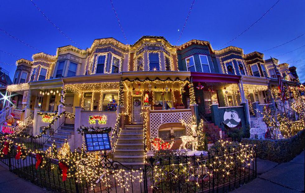 Crowds gather on this picturesque street to greet a timeless holiday tradition, as cheers and excitement disseminate through the jam-packed area with a mere flip of the switch. Lights not only cover the facades of the row homes themselves, but illuminate the sky above as they hang from roof to roof.