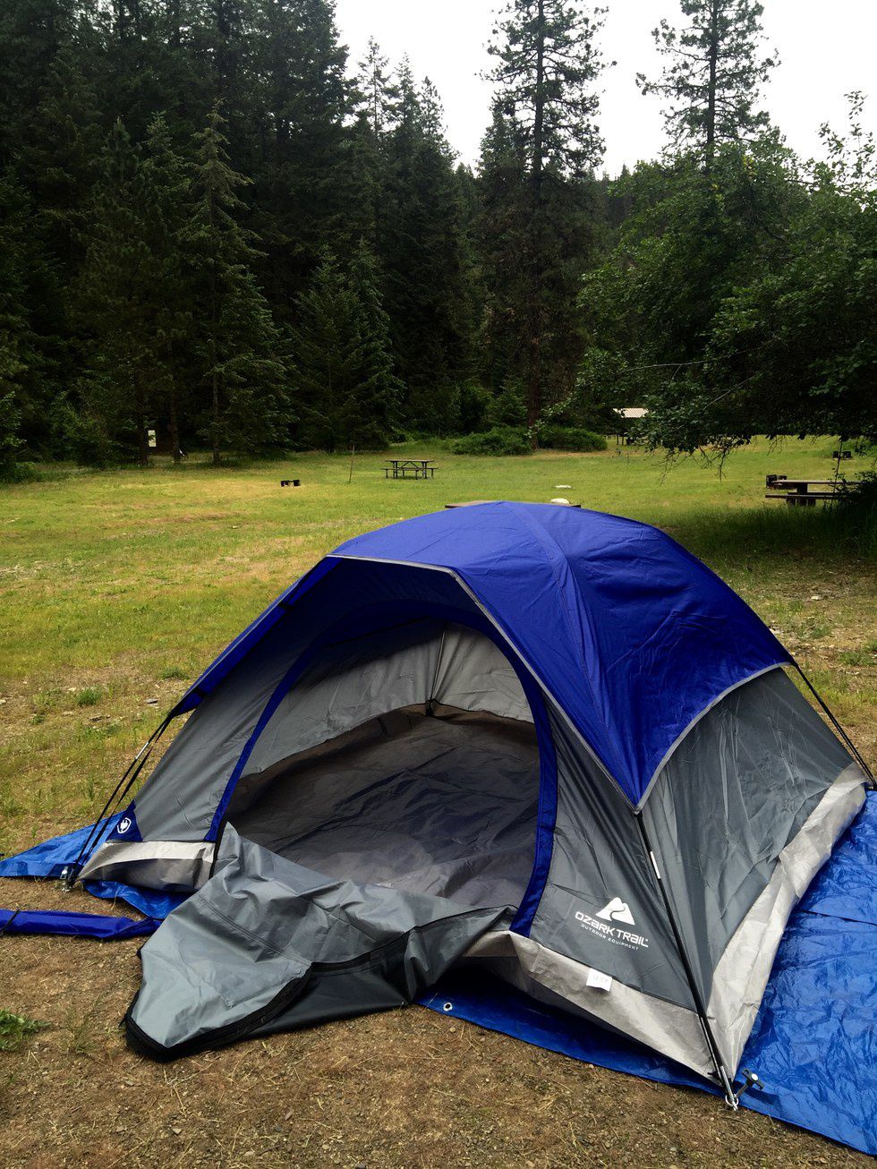 When we woke up in the morning, we continued toward Idaho. On our way, we stopped to see if someone would be able to repair our tent poles or if we could find replacements. We did not have any luck. The only replacement poles we could find were not even half the size that we needed. We ended up buying a small, cheap tent that is working well so far.