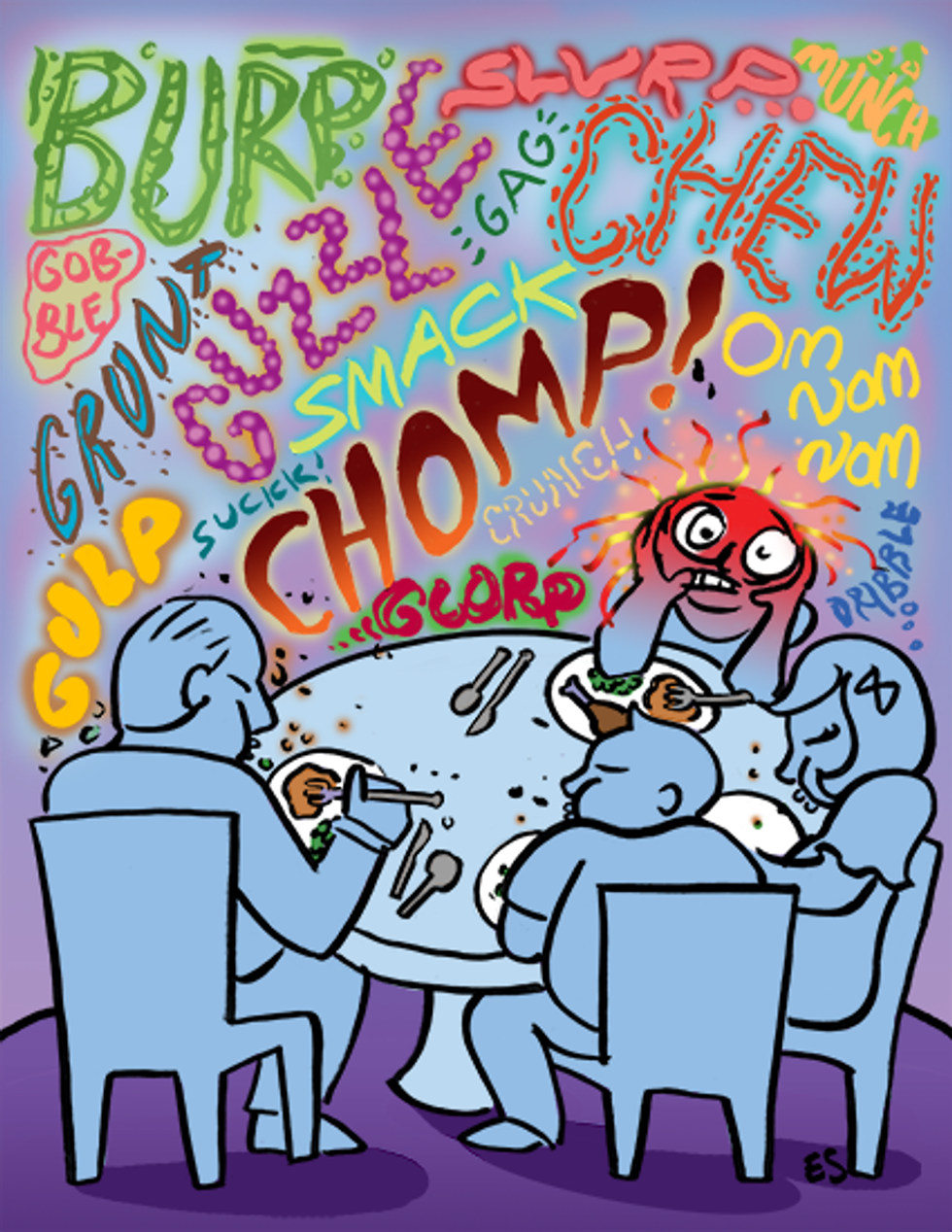 The sound of people eating has always annoyed me. I don’t know why, and I wish I could control it, but sometimes I just need to leave a room because I get so angry with the annoying noises and don’t want to take it out on my roommates or family. I think it’s like that for most people, though; a friend smacks their gum and you roll your eyes. Someone hiccups after drinking too fast and you want to tell them to shut up. You know these things are insignificant, but there’s just something about it that sends you through the roof.