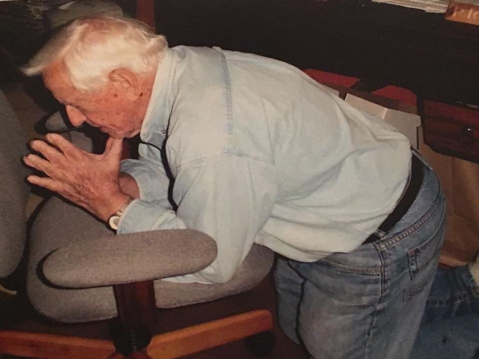 I never knew a man who loved God more than you did. You got on your knees to pray every day. Even when you couldn't do it on your own anymore, you made sure someone helped you get on your knees. You taught our family the importance of falling on your face in adoration of The Lord and you taught by example. I miss you when I worship.