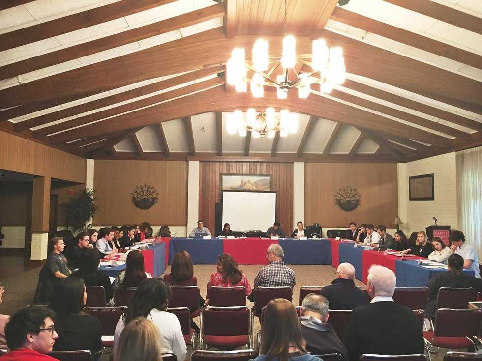 Last Sunday at 5:30 in the evening, 18 senators and the members of the Associated Students executive council sat at a blue and red striped horseshoe table and began the last Associated Student Senate meeting of the 2015-2016 academic year.