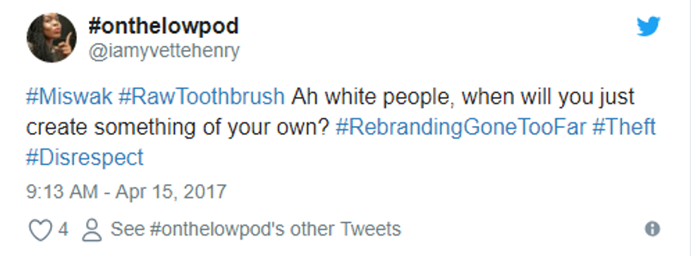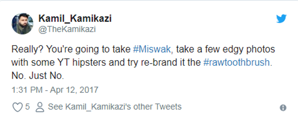 Yup, until Twitter erupted. Recently companies like Yoni have apparently "rediscovered" and marketed miswaks by labeling them as a new natural toothbrush.