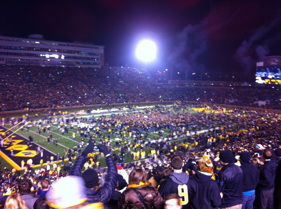 Later that fall, Mizzou reclaimed their glory by beating Texas A&M and winning the SEC East title. Everyone in the stands rushed onto the field (including me), met and shook hands with the players, and I got to kiss the 50 yard line!