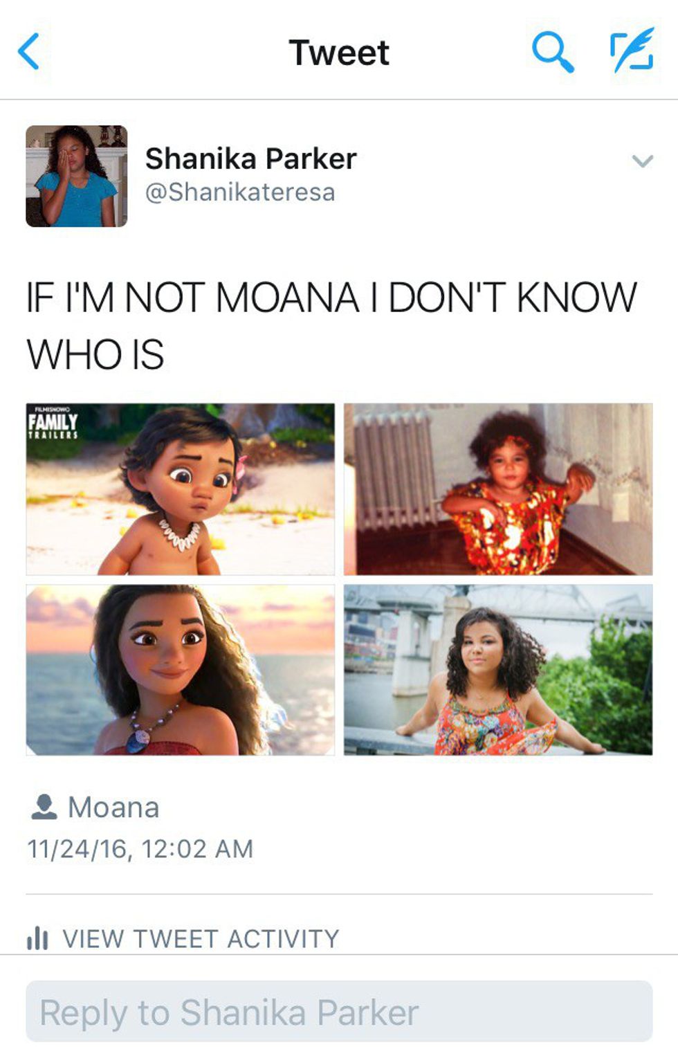 I had high expectations going into this movie. It had a lot to live up to. Moana is the Disney princess who looks the most like me at this point. Disney is doing a great job creating diversity, but most of the princesses leading up to this point only had one or two similarities to me. While Moana is Polynesian and not black and white, her hair and skin tone are very similar to mine. The little girl inside me who never had a princess look so similar to her was very excited. I used to think that seeing a princess that looks similar to you wasn't that big of a deal. Up until a few years ago, I didn't really understand how race played such a huge role in American culture. I'm still learning about it, but when I burst into tears at the beginning of the movie, I knew it wasn't just because I'm an emotional person. It was because I was finally getting to see a princess who looked like me.