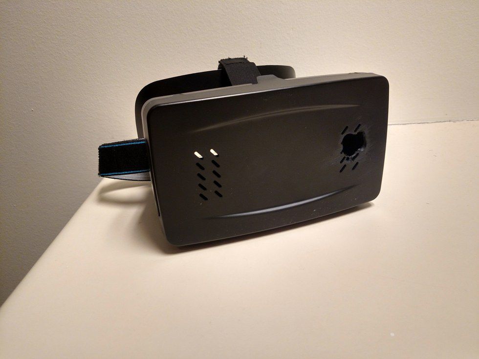 Many Google Cardboard Head Mounted Displays come with vent holes installed on the phone plate, keeping the phone from falling out. I’ve found that this is not enough. My Motorola Droid Turbo (3GB RAM & 2560x1440 display res) will get through one round of “Deep Space VR” and nearly reach its temperature limit. That’s just more than 10 minutes of galactic battles running around 20-30 FPS at best. I’ve been playing games since I was three, and I know enough to say that FPS is not pleasant. Now I understand the phone is not packed with an overclocked i7-6700k alongside an NVIDIA 980 Ti. The components are too big for now. But shouldn’t the phone games be made around the phone specs? I don’t know right now because I haven’t developed a game, let alone a phone game. Anyway, I’ve taken the liberty to manipulate my $22 mobile VR headset to have large holes in the flip-up back right behind the phone. I didn’t stop there. No, I installed a fan in one side and left the other untouched.