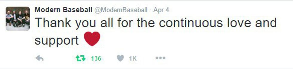 Brendan along with the rest of the Modern Baseball squad are incredibly happy with the amount of positive feedback from friends and fans alike.