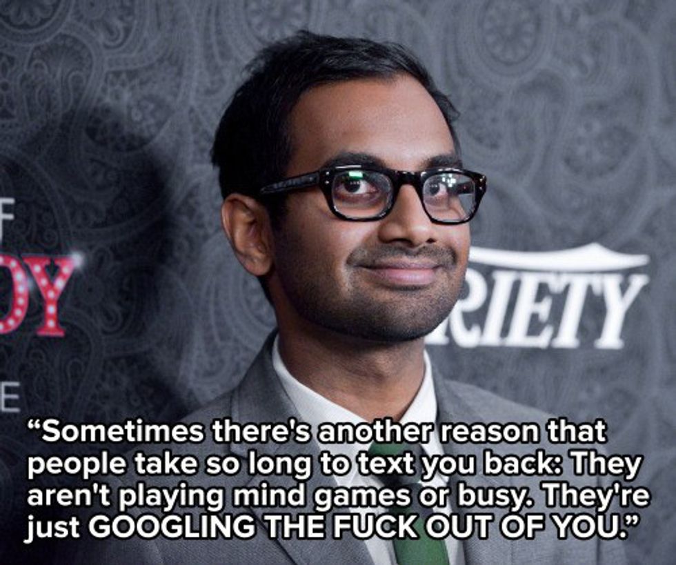 I listened to the book on audiobook, which most people think is cheating. I was going to read the actual book, until I heard the audiobook was voiced by Aziz himself. And I have always been a fan of his uncouth delivery and hilariously inflected voice. If you buy the audiobook, *spoiler alert*, prepare to spend the first five minutes of your listening experience being lambasted for being lazy for buying the audiobook.