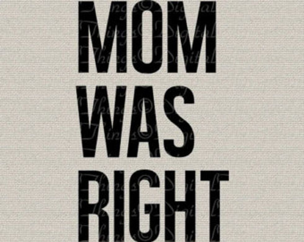 There are a few sayings I have been hearing ever since I was a little kid, and they have all come out of my mothers mouth, beginning with a stern "Ally Mae." And they all end in me not admitting, but knowing, that I should've listened because my mother was right.