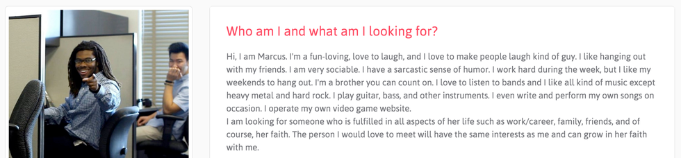 As I read the finished page I realized that my mother crafted one of the most generic dating profiles I've ever seen. She stuffed every section with cliché lines about what it means to be a "man of God" as if she was copy and pasting them straight out of a New Believers pamphlet. Even the username she selected is endearing yet cringeworthy: LiveLovePray2020. One of the first sentences says that I work hard during the week, but like to hang out on weekends. Not only does that make me sound like the most boring person on the planet, but it reveals a lot about what my mother thinks about me.
