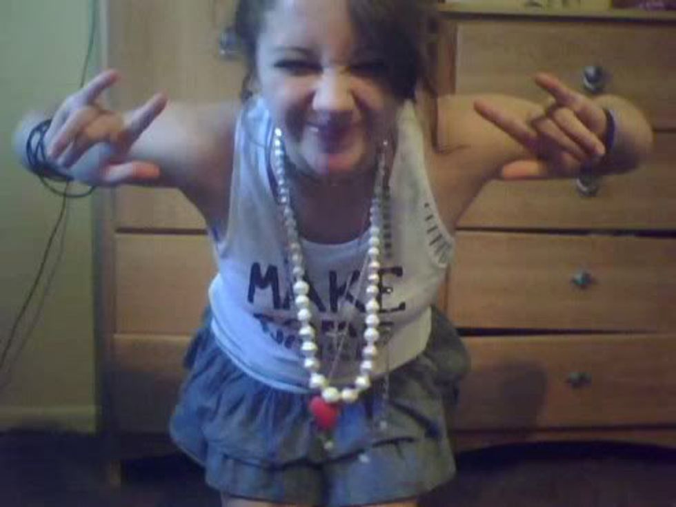 This picture was taken in front of my computer webcam, after I was inspired by Miley Cyrus' 7 Things music video and determined to prove my Rock N Roll soul. (Notice the black jelly bracelets on my right hand, an obvious middle school trend.)