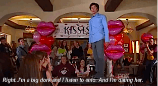 Speaking of the greatest "O.C." couple, Seth standing on the coffee cart telling Summer he loves her in front of all of Harbor is just so perfect.