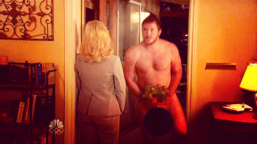 Second moment: It was another long day at college, I haven’t eaten anything the whole day. I saw the scene where Andy Dwyer (played by Chris Pratt) went back to his ex-girlfriend house, butt naked screaming out of the door: “Baby! I’m back!”. It was hysterical!!! I loved every moment that happened in that scene. All of my tensed muscle from raging on my roommate was all gone. I was finally relaxed again…