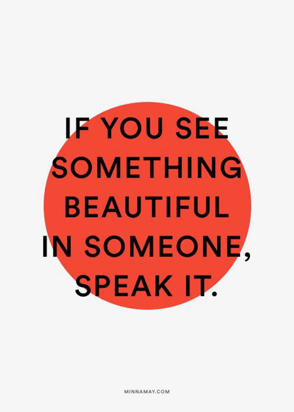 This isn't necessarily a Monday mantra, but it is something we should remind ourselves everyday. Always look for the good in others, and let them know. Making someone else feel good often brings a smile to both of you.