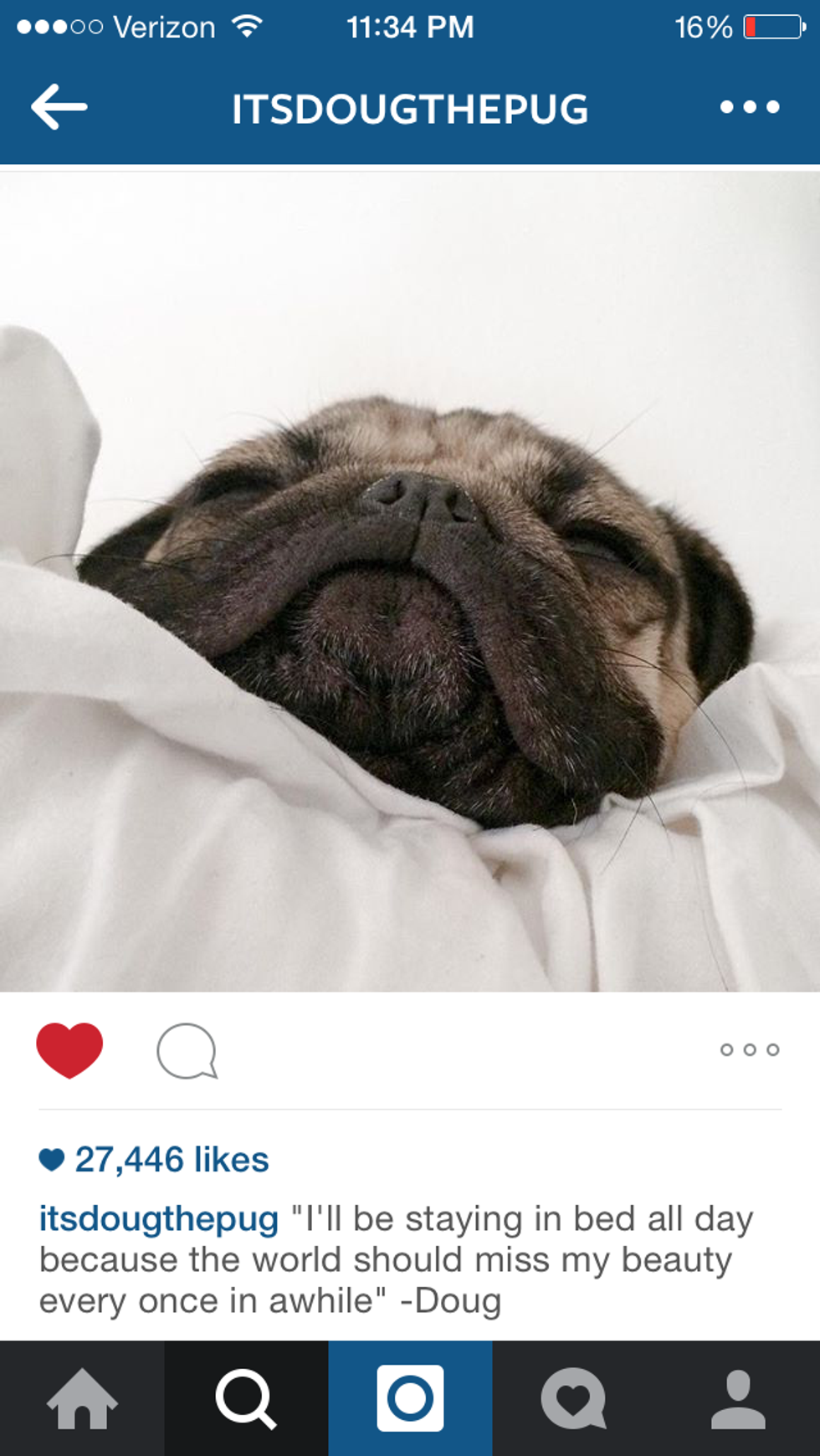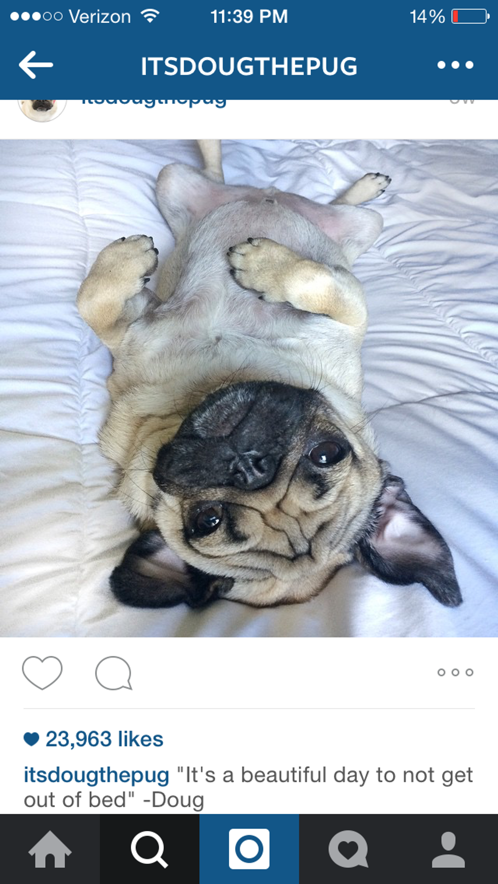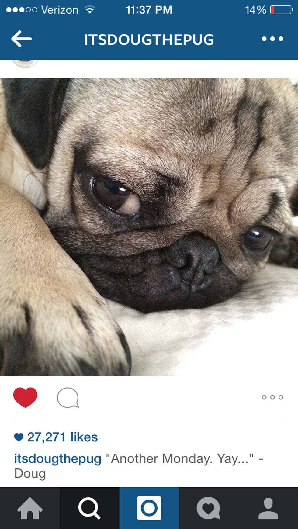 If you're not familiar with Doug the Pug already, he is an Internet sensation. His owner posts cute pictures of him daily with hilarious and totally relatable captions that never fail to make me chuckle. Here are 10 of the best Doug the Pug posts that totally nail the Monday morning blahs.