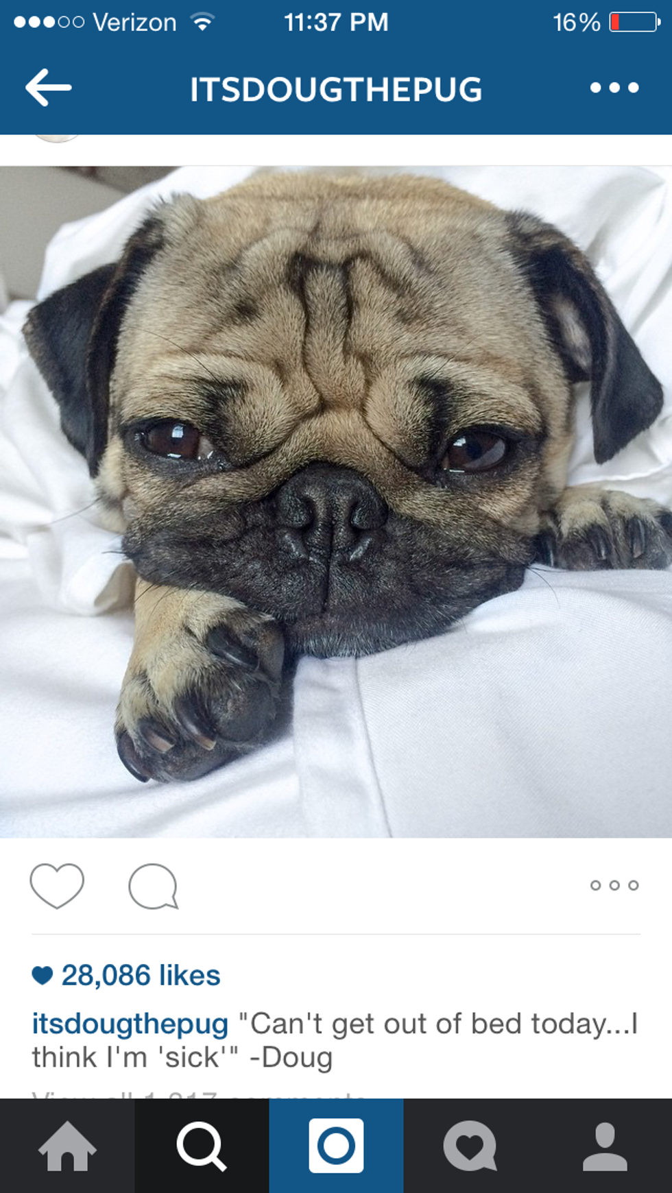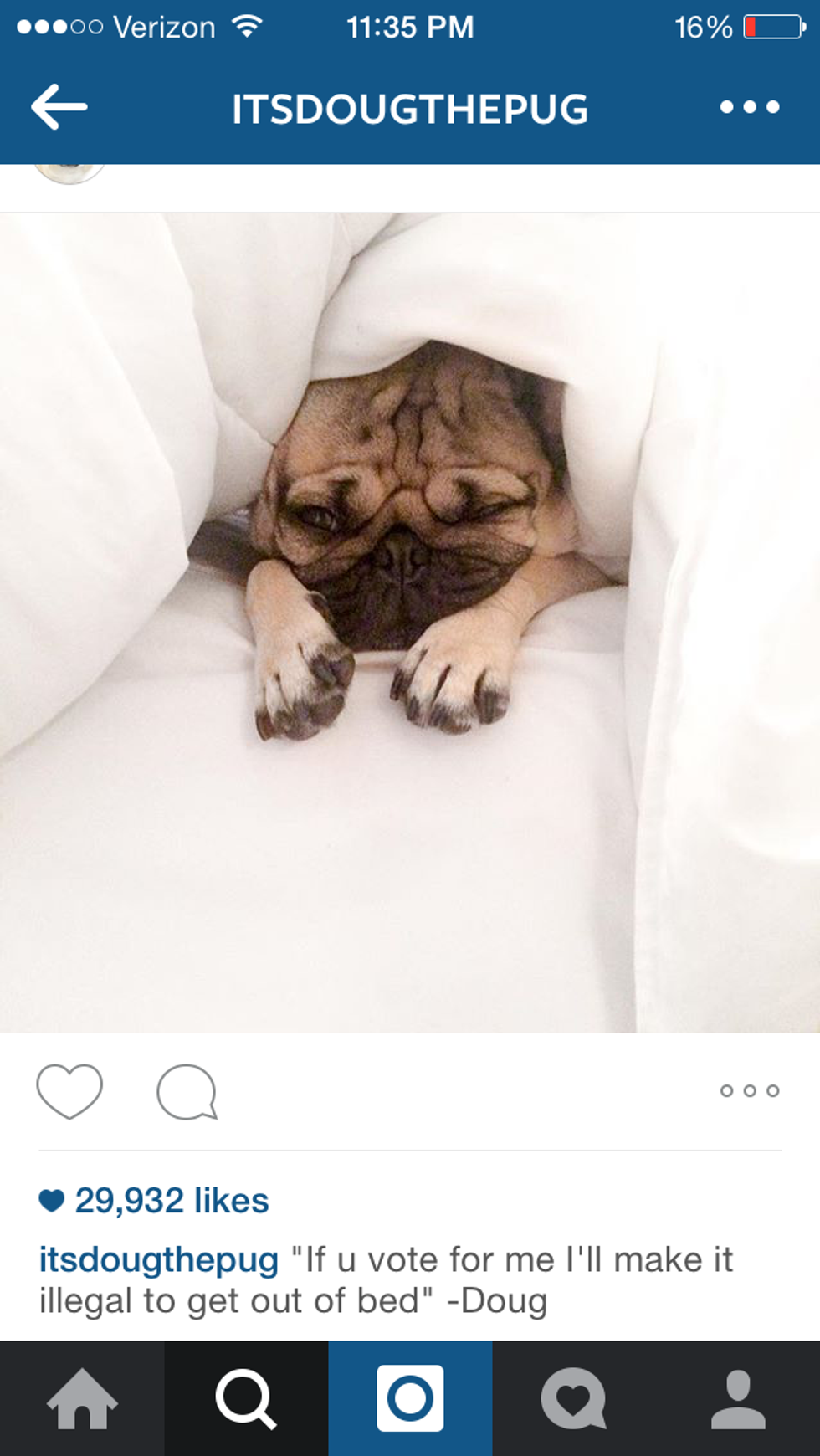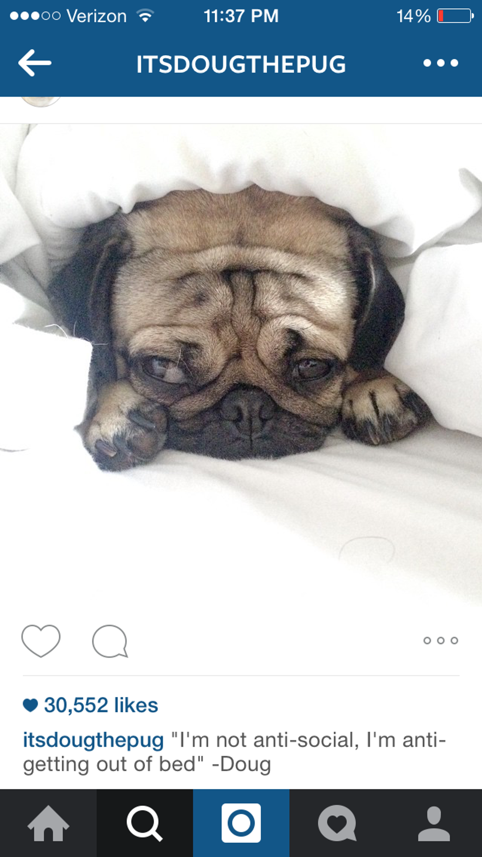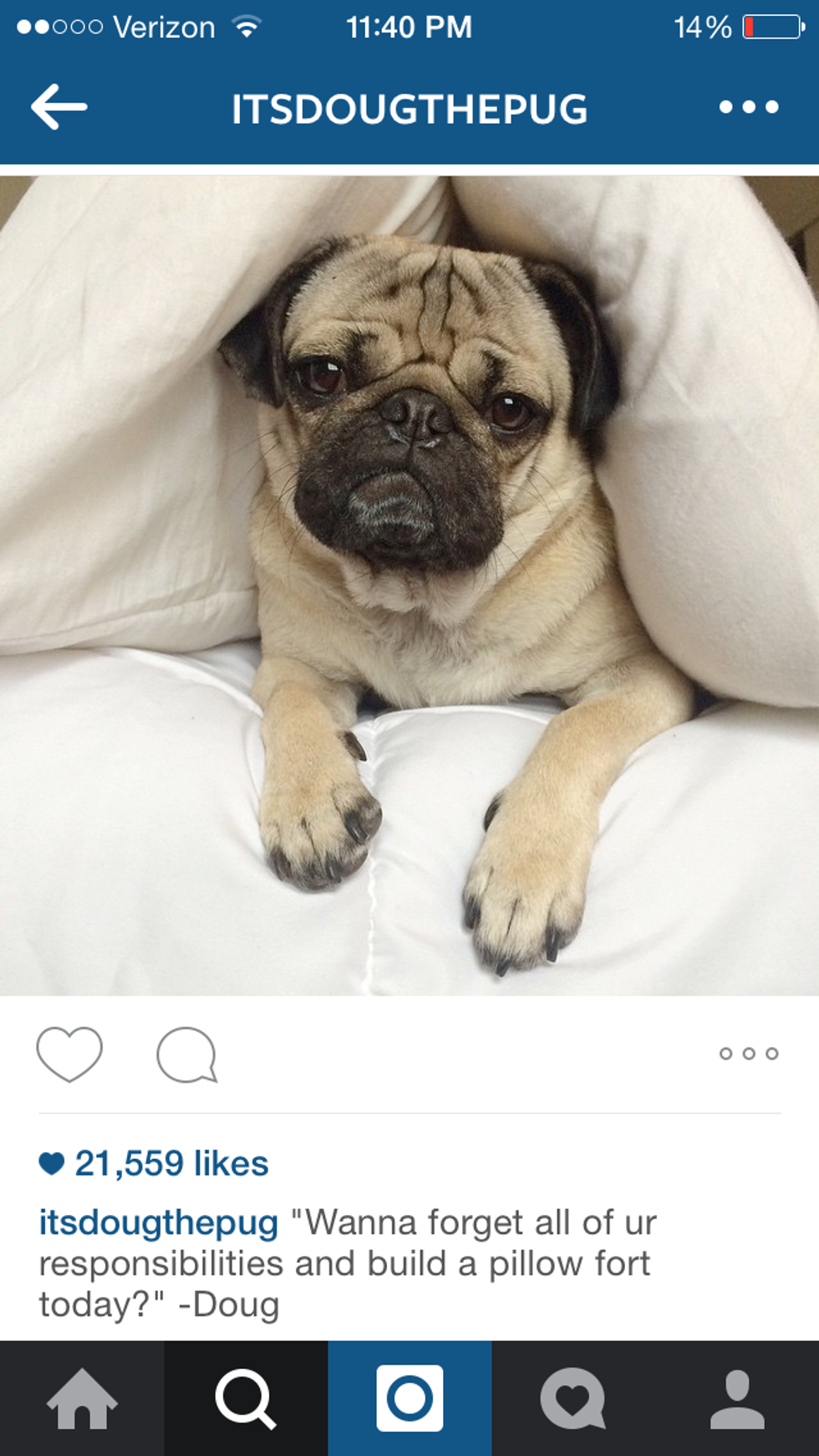 If you're not familiar with Doug the Pug already, he is an Internet sensation. His owner posts cute pictures of him daily with hilarious and totally relatable captions that never fail to make me chuckle. Here are 10 of the best Doug the Pug posts that totally nail the Monday morning blahs.