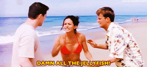 A jellyfish stung her, so what? It’s not like she’s two miles away from the house and in unbelievable pain. No need to curse an entire species.