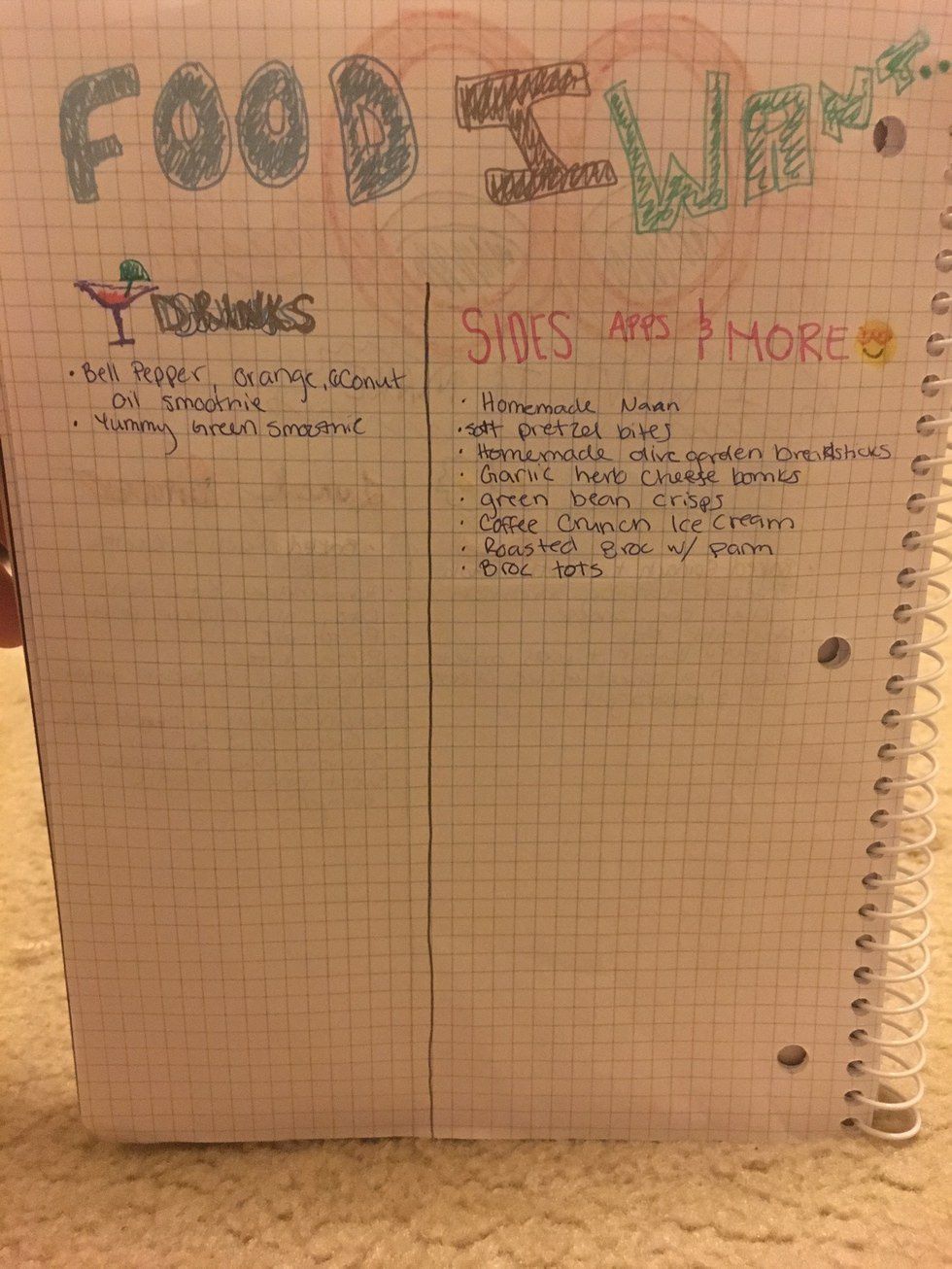 I split it into 4 categories: Breakfast, Lunch/Dinner, Drinks, Sides Apps & More. I was most excited about the drinks because I just bought a blender.