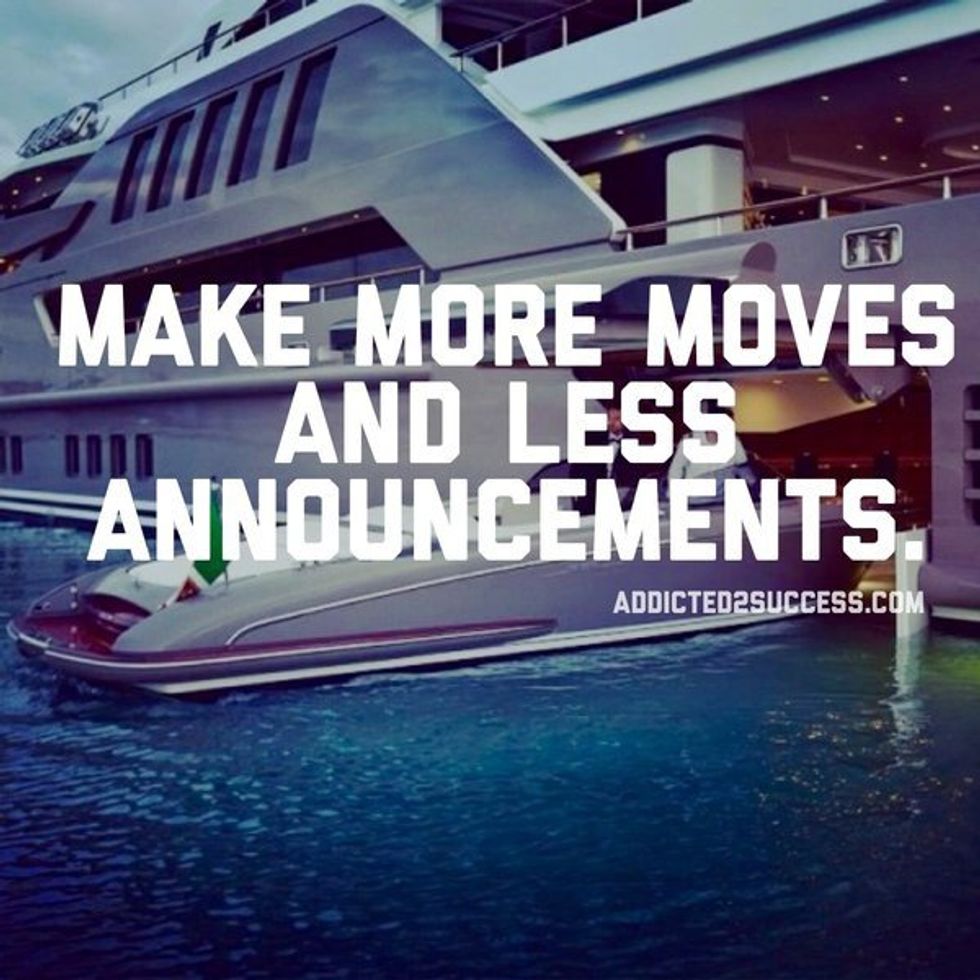 Not to mention, when you make announcements, sometimes you will be so focused on how everyone will react when you go through with your plans that you might forget to stay on top of your plans. If you do this, you risk not accomplishing what you announced, disappointing the people who were rooting for you and making the people against you satisfied. You have to be more focused on making the moves instead of caring about how some people will react to it when it's done.