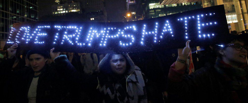 People are afraid. The protests we see, those are not people whining that their vote didn’t win. This was a historical election, it will go down in history books. A man who openly has the support of the KKK is our nations President-elect, people have a right to be terrified.