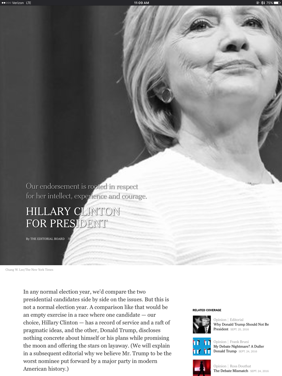 Then the investigation into Clinton's emails was reopened, and everything shifted. Popular news media outlets reluctantly released poll results indicating that the race was now very tight. However, these same news outlets, notably the New York Times, still projected a Clinton victory. Why? I thought. Because they want her to win? This morning, NYT's Daily Briefing did everything short of announcing a Clinton victory.