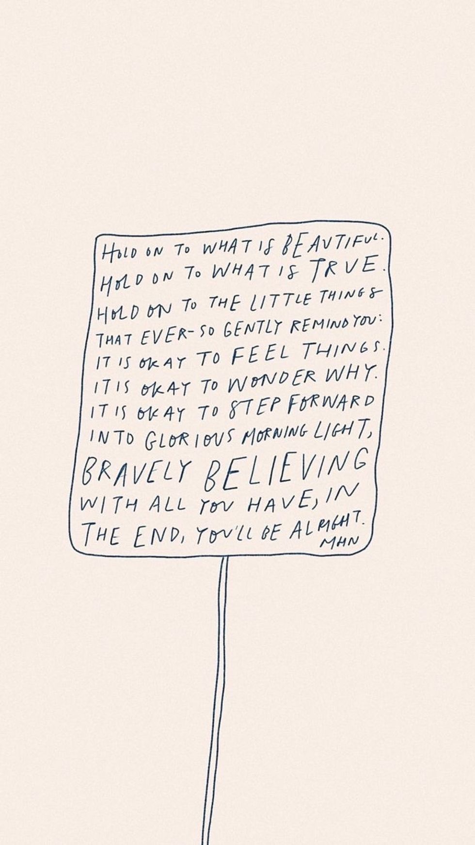 Frankly, you can't go on Pinterest these days without seeing MHN's signature watercolors and script. I have entire Pinterest boards dedicated to her work. Most of the time, I go to these boards for solace in trying times or when I just need a little pick me up. She reminds me to have grace even when times are tough; this is a welcome break from trite "be positive" quotes.