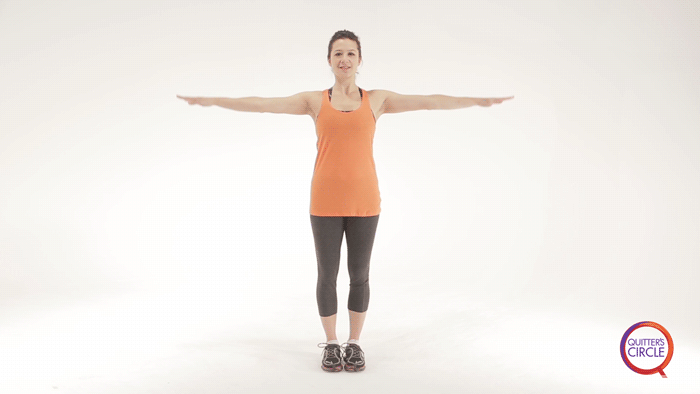 If you buy cheap weights from 5 Below you can go from 1-5 pounds and hold them during the arm circles. If you don’t want to use weights and keep this equipment-free, then up the arm circles to 20 each way.
