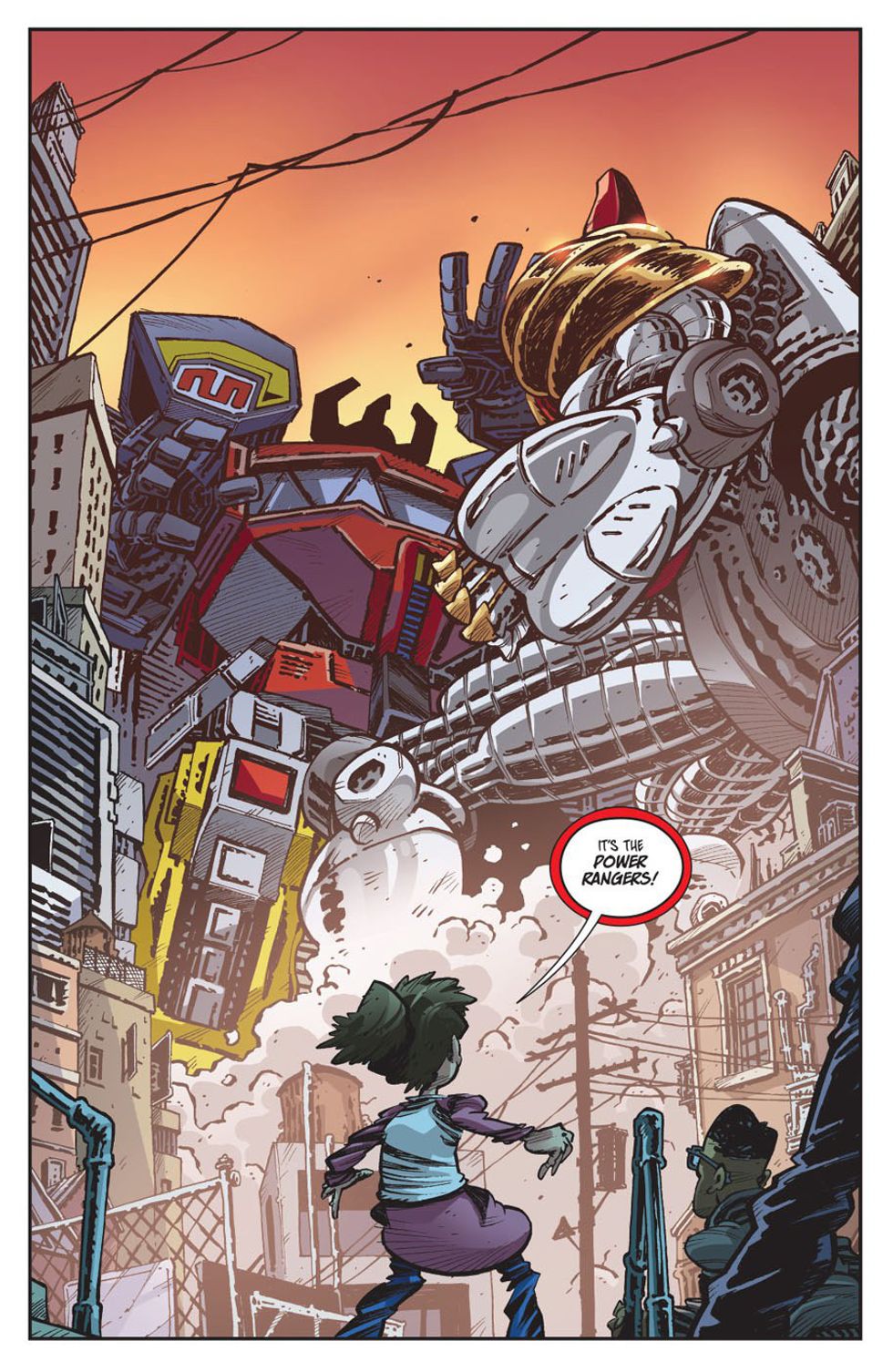 The final story starts out with Zordon asking Alpha for a report on an epic Megazord battle the rangers are having with a monster in its own Zord. As the battle ensues and Zordon continues to tell Alpha that the Rangers will find a way to win a little girl who is close to the battle tries to get close as she is excited and now understanding how own danger. The battle ends with the Rangers jumping from their Megazord as it was heavily damaged straight into the monster’s Zord and defeating it. Zordon continues to watch the situation comments that even with their powers they are and were true heroes before they morph. It then shows the Rangers as civilians helping all the other people who were hurt or need help from the destruction that just happened.