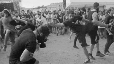 There are two ways mosh pits are started: general pushing and shoving or running. From my experience, I would say the former option is the most common way to start a mosh pit. All it takes is one person to become hyped enough to butt another person. If that person feels like moshing, they will shove back. The people around the two will notice and either join or back away. This is how the pit is formed. This will happen at a very rapid rate.