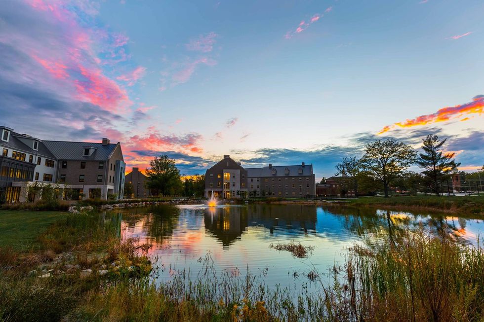 Although this area of Western Campus is the most newly developed part of campus, it certainly does not lack the beauty of the rest of campus. As seen in this photo, it is especially beautiful at sunset.