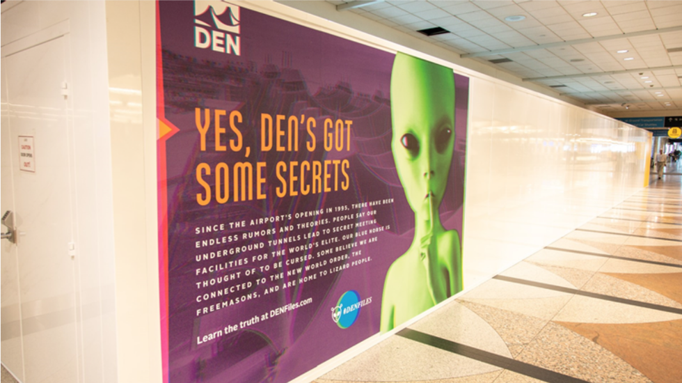 Aside from this, the DIA has launched a new marketing campaign fully dedicated to these theories. Giant posters depicting aliens and lizard-people have covered entire walls of the airport with phrases like "Yes, Den's got some secrets" and "Cool new areas to hang out? Or area 52?" Who knows if this is supposed to be a joke or not, but this airport has definitely got some secrets.