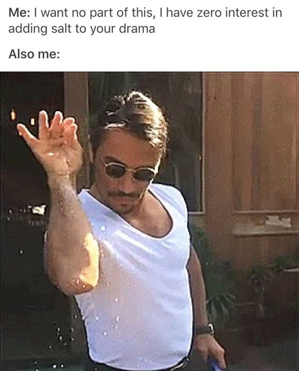 Shortly after "Hollyweed," a video of Turkish chef Nusret Gökçe went viral after he sprinkled salt over his forearm while preparing a steak. Now, the meme describes all of us when we're being extra.
