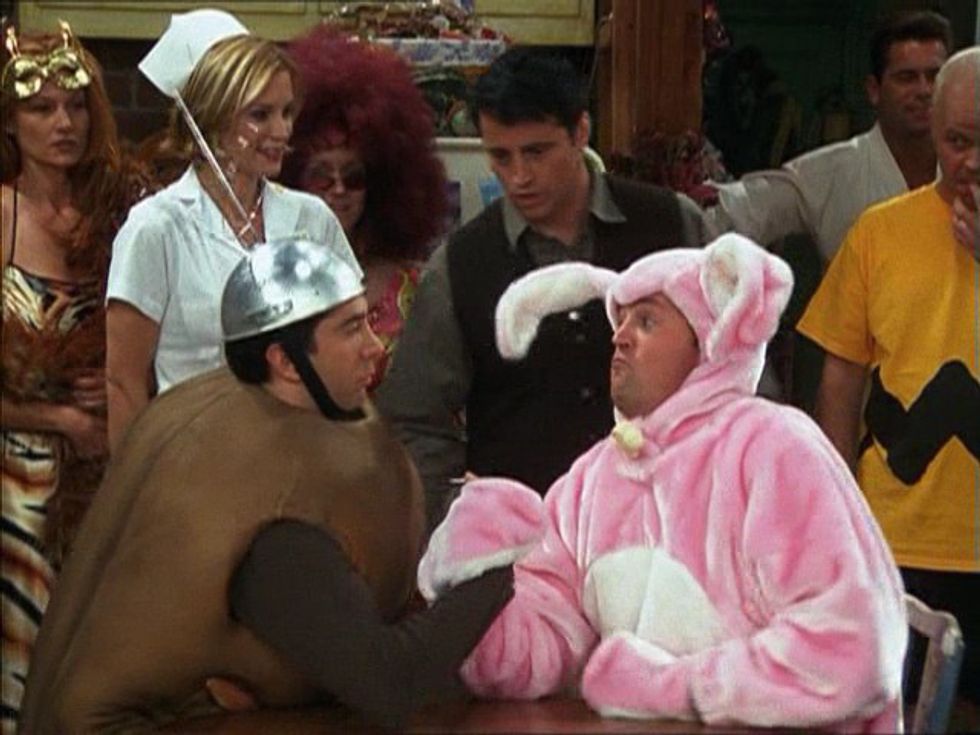 It might have been more accurate if it were named “The One Where Chandler Wears a Pink Bunny Costume.” In this episode, Monica and Chandler decide to host a costume party for Halloween. All in twenty-two minutes, Phoebe breaks up an engaged couple, Rachel gets into a fight with a boy she was trying to give Halloween candy to, and Ross and Chandler settle who would win in a fight. Typical “Friends” shenanigans, just with all of them dressed up in iconic costumes.