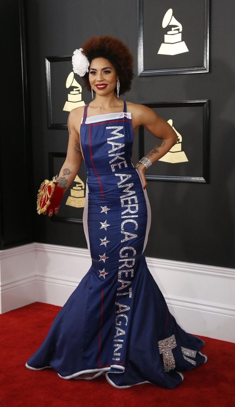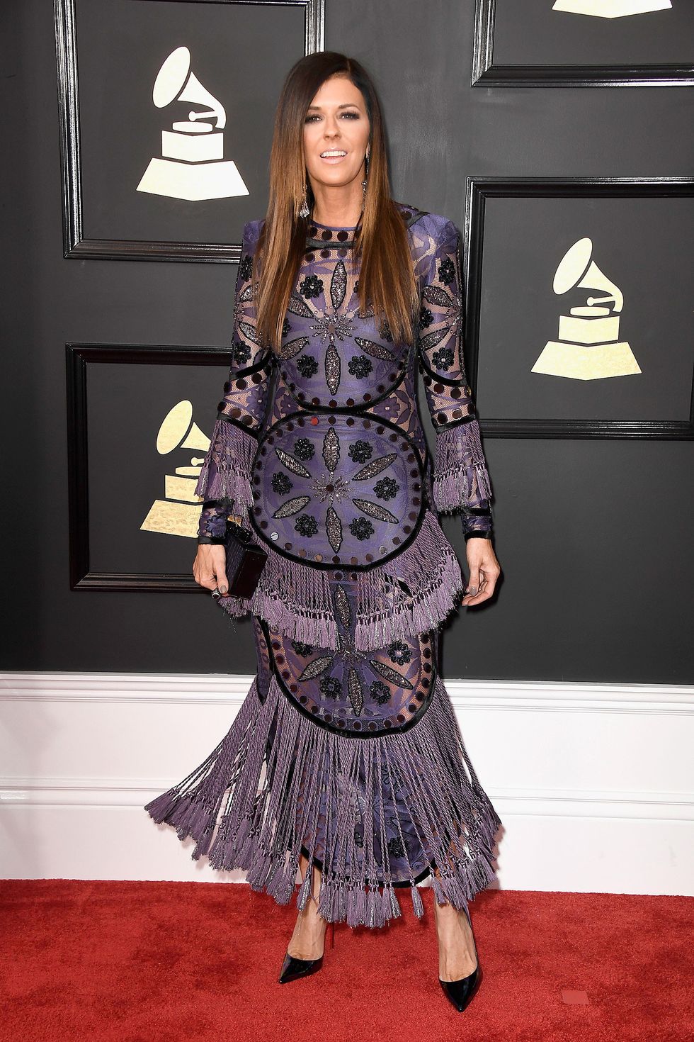 Most celebrities at the Grammy's were afraid of being cut by this dress while walking by.
