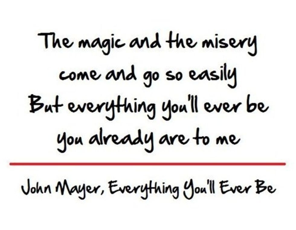 You are already beautiful, wonderful enough. As someone who struggles with self-worth and validation, this is one of my all-time favorite Mayer songs despite never being studio released. You are already enough.