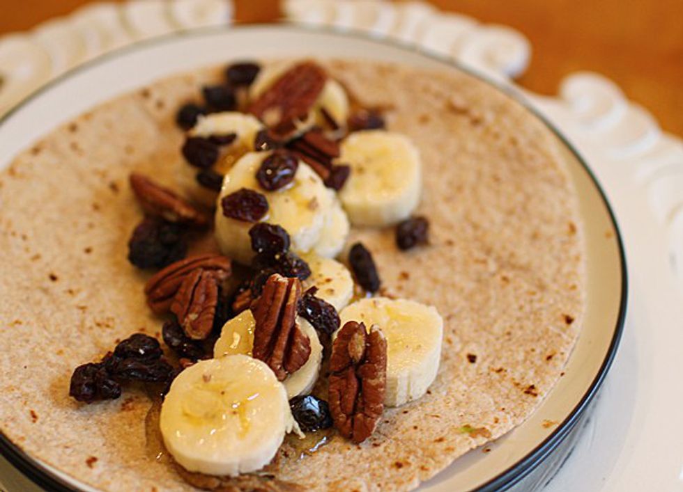 As you might have noticed by now, the best snacks are protein bases with a fruit or veggie pairing, and this snack is no exception. This snack is ultra portable for on the go. All you need is a multigrain tortilla, almond butter, one banana, and nuts of your choosing. The nuts and almond butter will deliver protein while the banana will help you get in your daily dosage of fruit.