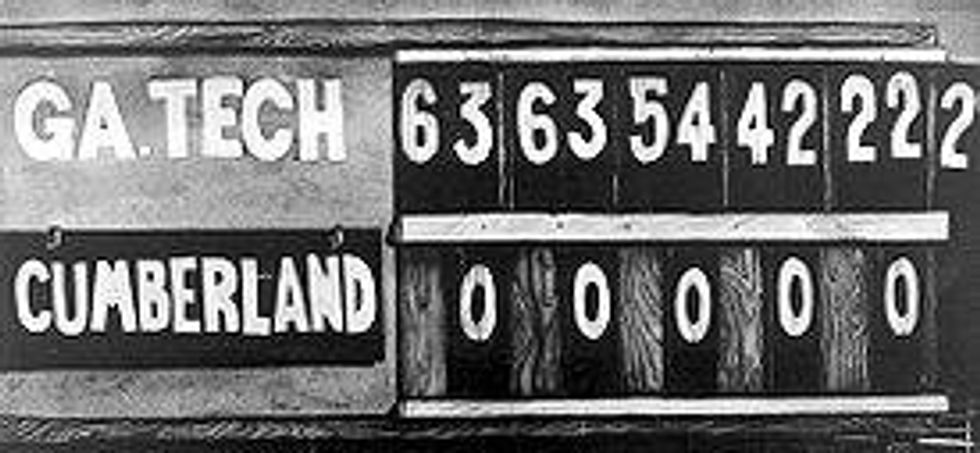 In 1916, Georgia Tech took the field against Cumberland University. Georgia Tech was seeking revenge for Cumberland beating their baseball team 22-0 earlier in the year. This led to Georgia Tech putting up a record 220 points in the most lopsided game in sports history.