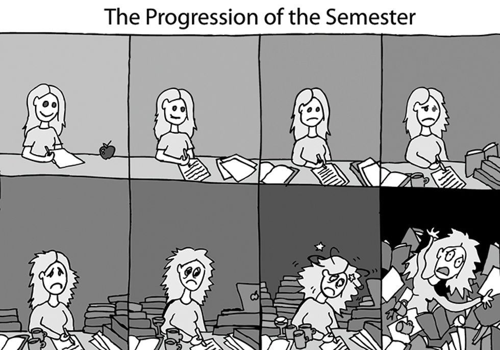 When beautiful beach days, long summer nights, and carefree living come to an end, something new begins: the fall semester. At first, the "fall semester" is an enticing, exciting endeavor, but something happens as the semester progresses. Here are some examples of what you may experience: