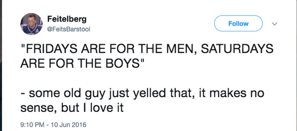 6. Social Saturday: "Saturdays Are For The Boys" - @FeitsBarstool or Some Old Guy.