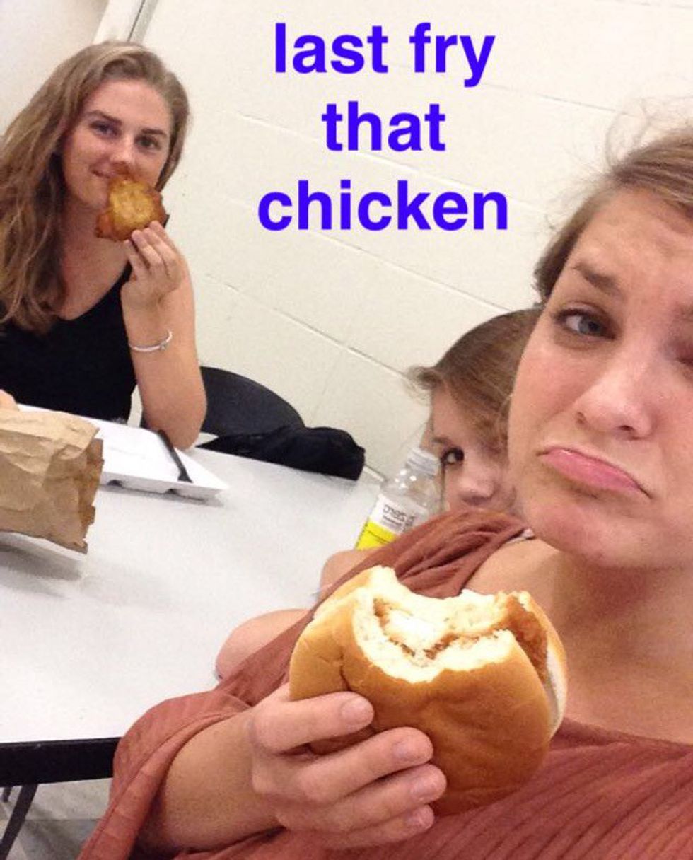 Oh, how I loved Wednesdays. Chicken Day! The farther along you got in school, the better the chicken got, it seemed. One of the most looked forward to parts of high school was chicken day, and one of the saddest days of senior year was the last Wednesday of the year, because that meant no more chicken days. And if you're anything like my friends and I, you took embarrassing selfies with your chicken (don't judge).