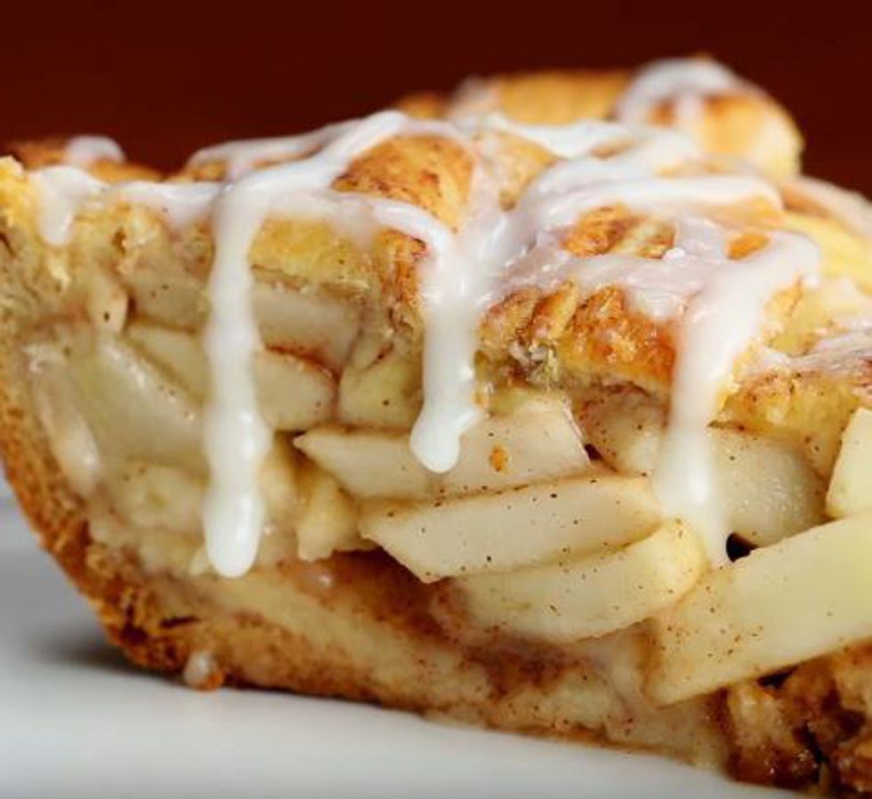 This dessert put a spin on the traditional apple pie by replacing the crust with cinnamon rolls. Cinnamon rolls and apple pie together - what a dynamic duo!