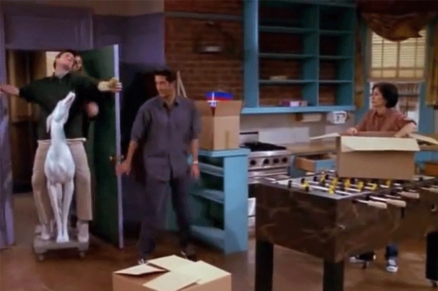 So, you're new room is finally starting to feel like home. You've moved past the stage where your living in a room of boxes and past the stage where you attempt to keep your newly decorated room insanely neat. You've finally gotten to that homey, lived-in feel. This means that the memories of move in day are starting to fade. Well, never fear, the cast of friends is here to help you relive each and every moment.